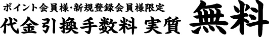 ※注意事項 ・ご注文時の手数料が¥0になるイベントではございません。 ・期間中であれば、何度でもご注文頂けます。 ・商品発送後2〜3日頃に、代金引換手数料分400Pがポイント口座に加算されます。 ・弊社ポイント会員に登録されている必要があります。 ・代金引換以外のお支払い方法につきましては、通常とおり手数料が掛かります。 ・お買物ポイントは通常とおり加算されます。 ・期間を過ぎたご注文は、イベントの対象となりませんので、終了時間にご注意下さい。